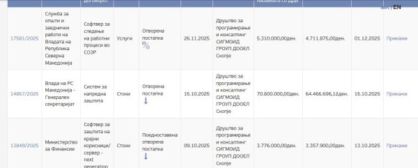 Факт: Фирма со само тројца вработени за период од 2 месеци добива тендери од Владата на Христијан Мицкоски.