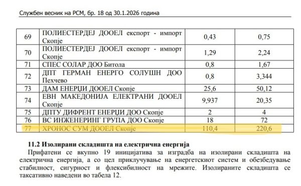 Компанијата на Давидовиќ-Дака „Хронос сум“ од јануари годинава Божновска ја ставила во Годишниот план за изградба на енергетски објекти за 2026 година, објавен од владата.